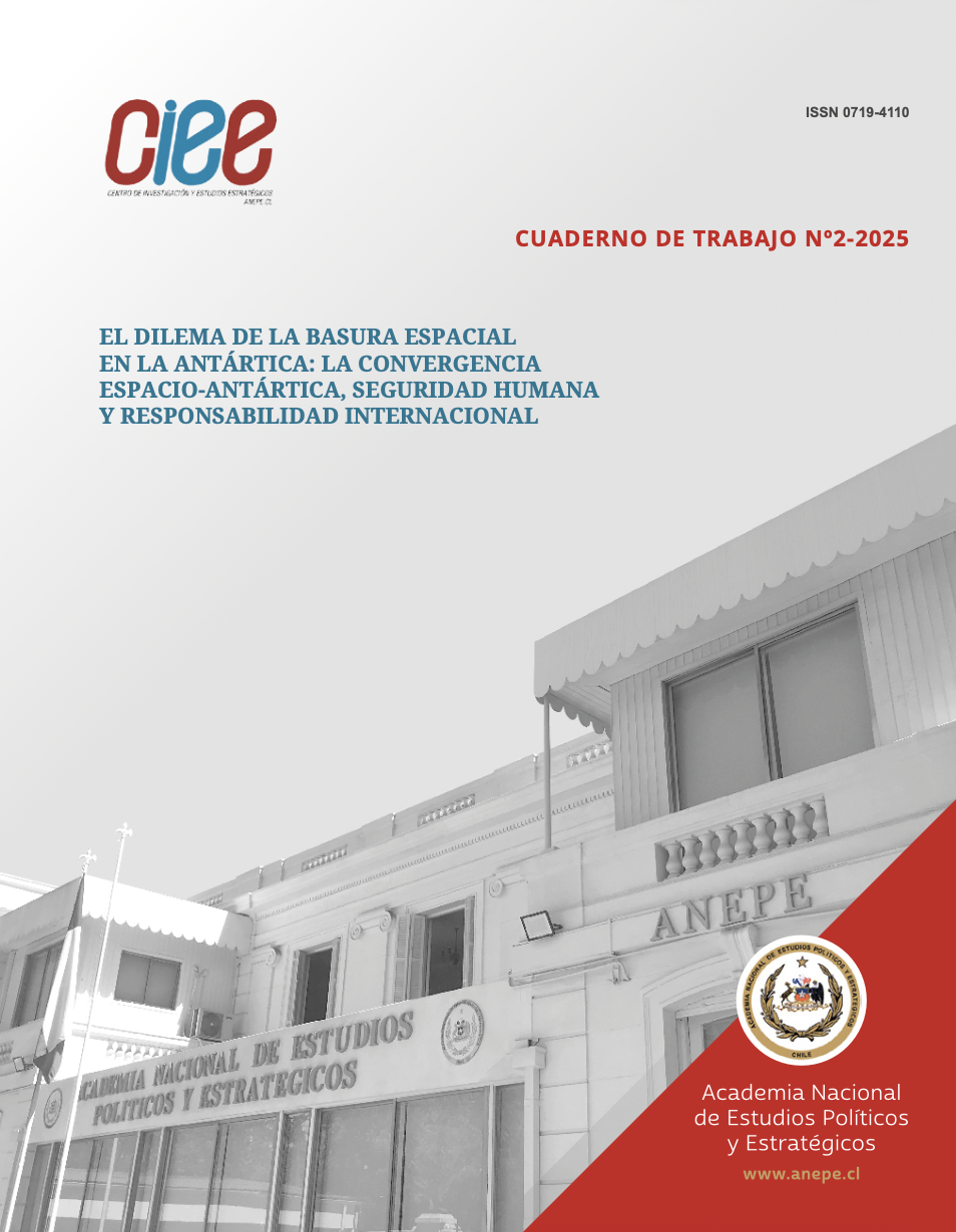 Las actividades espaciales han constituido un motor de innovación y proyección del Poder Nacional, generando al mismo tiempo nuevas dinámicas en espacios estratégicos para la seguridad internacional, como el continente antártico. Este estudio exami- na los reingresos de desechos espaciales en la Antártica entre 2004 y 2025, evidenciando un incremento sostenido vinculado a la competencia estratégica en el espacio ultraterrestre, analizando el impacto de este fenómeno en la seguridad internacional y la aplicabilidad de los principios de responsabilidad internacional bajo el Tratado del Espacio y el Antártico, destacando la interdependencia entre ambos regímenes y se aportan datos empíricos sobre un fenómeno escasamente explorado. Finalmente, se evalúa el rol de Chile, como país antártico, para liderar la búsqueda de soluciones es- tructurales en esta materia